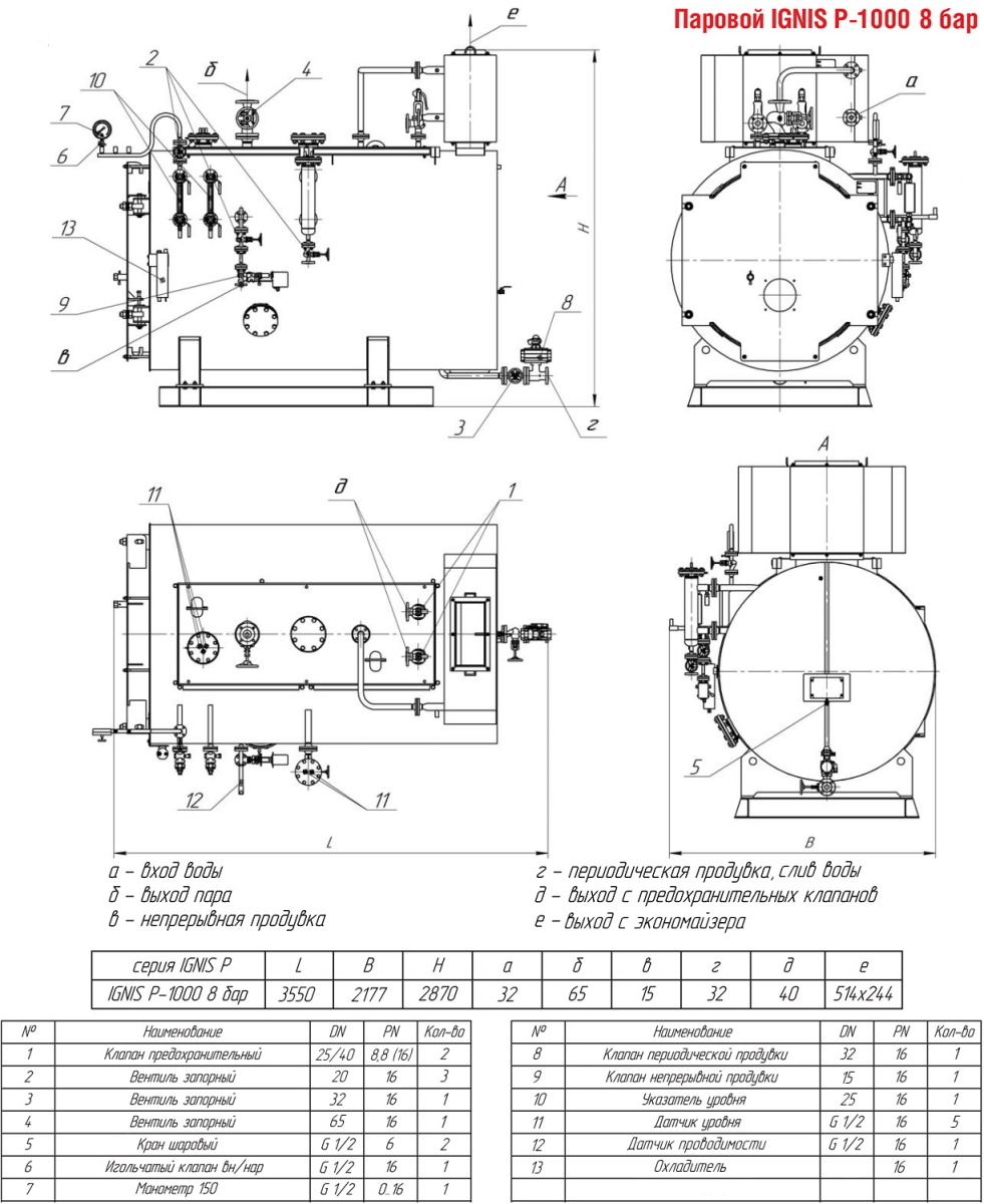 Технические характеристики парового трёхходового котла ARCUS IGNIS P-1000